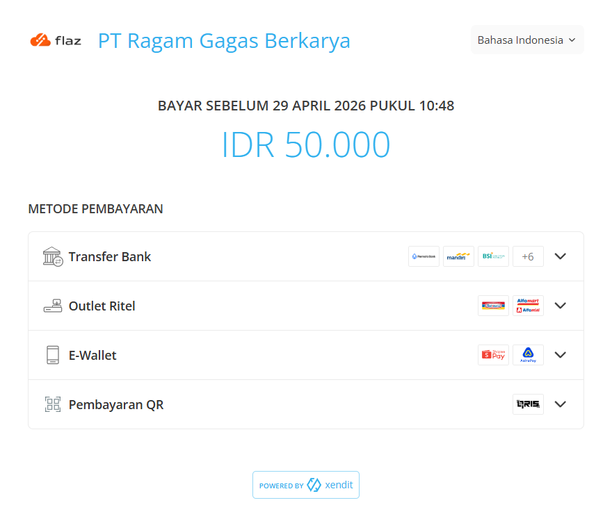 Choosing the right payment method makes the subscription process smoother and more secure. At Flaz Cloud, we provide two main options to make it easier for you: Xendit for local payments and Cryptomus for those who prefer using digital assets.